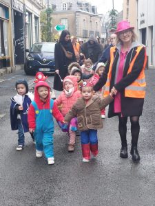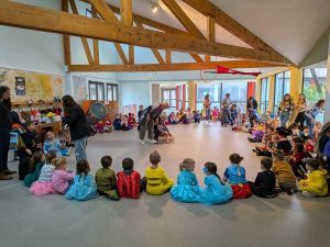 Pour des raisons de sécurité et de confort, nous avons dû adapter notre organisation : la durée de la sortie a été réduite et certains temps se sont déroulés à l’abri, afin de préserver les enfants des intempéries. Cela ne les a pas empêchés de chanter, danser et profiter pleinement de ce moment convivial.